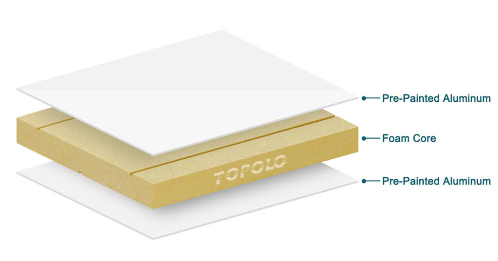 - Paneelstruktur: Aluminiumblech + Schaumstoffkern.