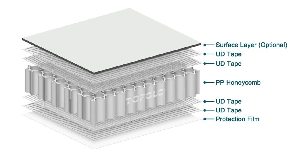 Thermoplastische Polypropylen-Wabenplatten werden aufgrund ihres geringen Gewichts, ihrer Langlebigkeit und ihrer hohen Leistung zunehmend in Bodenbelagsanwendungen eingesetzt. Diese Böden bestehen aus einem Polypropylen-Wabenkern und einer CFRT-Außenschicht (Continuous Fiber Reinforced Thermoplastic) als Grundzusammensetzung und werden dann je nach Anwendungsanforderung mit anderen Materialien verbunden.