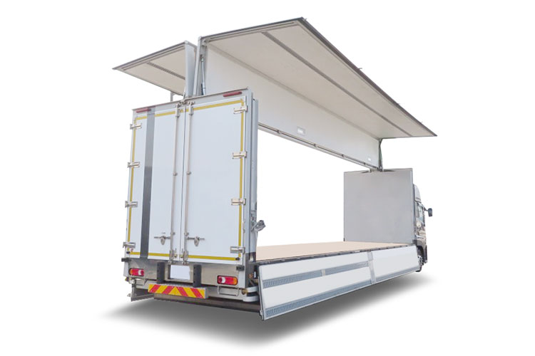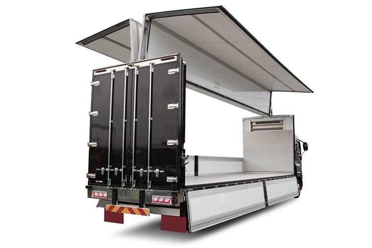 - Die Flügeltüren können manuell oder über ein hydraulisches System betätigt werden, wodurch sie insbesondere bei größeren Lkw einfach zu bedienen sind.