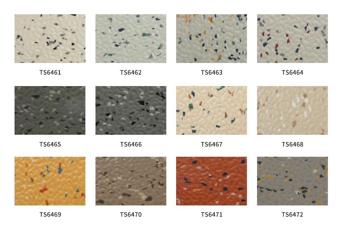 Kautschukböden bestehen aus hochwertigem Naturkautschuk, synthetischem Kautschuk, natürlichen mineralischen Füllstoffen, umweltfreundlichen Pigmenten und anderen Rohstoffen und werden unter hoher Temperatur und hohem Druck durch Verfahren wie Plastifizieren, Vergraben und Färben vulkanisiert. Es ist völlig frei von PVC-Weichmachern, Schwermetallen und Halogenen und ist ungiftig, wenn es verbrannt wird. Es ist zu 100 % resistent gegen Staphylococcus aureus und Escherichia coli und hat eine signifikante feuchtigkeits- und schimmelresistente Wirkung.