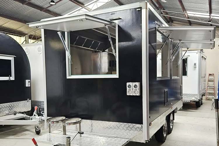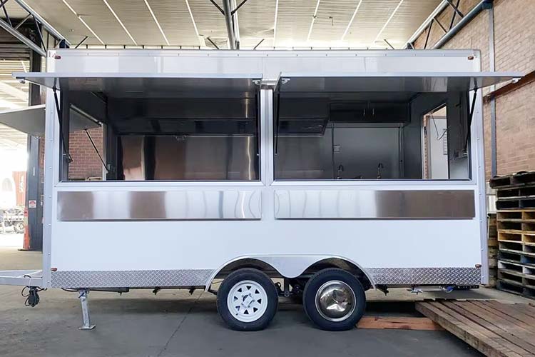 Dreiachsige Imbissanhänger bieten mehr Platz und eine höhere Tragkraft als ein- oder zweiachsige Pendants. Diese Anhänger werden häufig für den Großtransport von Lebensmitteln eingesetzt und bieten Platz für mehr Ausrüstung, Lagerraum und Arbeitsfläche. Die Dreiachskonstruktion sorgt zudem für verbesserte Stabilität und Manövrierfähigkeit, insbesondere bei Beladung mit schweren Küchengeräten oder großen Mengen an Vorräten.