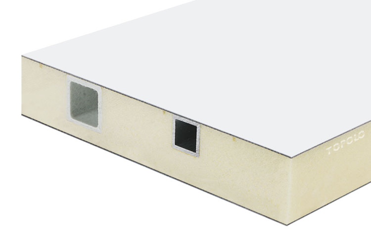 Verbundplatten, die nur aus Schaumstoffkern und -haut bestehen, haben erhebliche Einschränkungen in Bezug auf Festigkeit und Leistung und sind nur schwer mit den Anwendungsanforderungen komplexer Szenarien zu erfüllen. Wenn die strukturelle Festigkeit verbessert werden muss, kann in der Regel ein Stützrahmen im Inneren der Sandwichplatte hinzugefügt werden. Diese Art von Rahmenmaterial kann nicht nur die strukturelle Festigkeit der Sandwichplatte effektiv verbessern, sondern auch ein größeres Plattendesign unterstützen und gleichzeitig die Dicke der Platte reduzieren. Typische Anwendungen sind verschiedene Kofferaufbauten wie Kühlkoffer und Caravans.