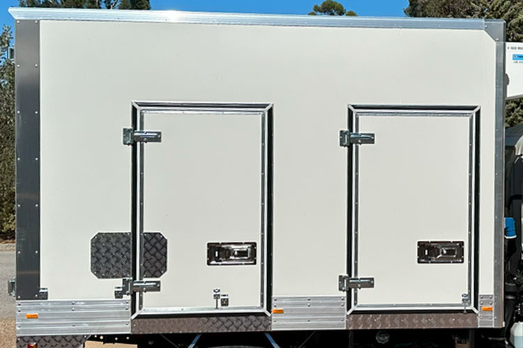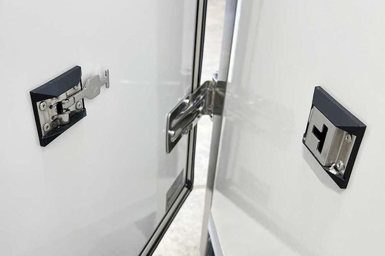 Durch die Verwendung von FRP-Sandwichpaneelen mit PU- (Polyester) oder XPS-Schaumkern als Türverkleidungsmaterialien ist dieses Material nicht nur leicht, sondern verfügt auch über eine hervorragende Schlagfestigkeit und Wärmeisolierung, die sich sehr gut für den Transport von Gütern eignet, die eine Temperaturkontrolle erfordern.