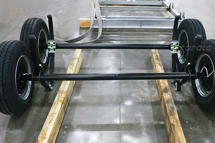 Die Doppelachsabstützung ist stabiler und hat eine stärkere Tragfähigkeit. Einachsige oder dreiachsige Anhängerfahrgestelle können je nach Benutzerwunsch konstruiert und hergestellt werden.