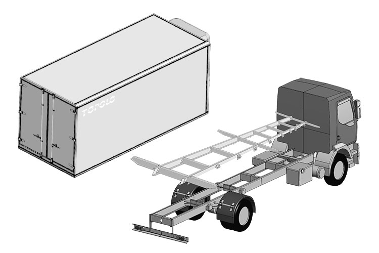 Dank des verstellbaren Hilfsrahmens lässt sich der Kühlkoffer perfekt an das Fahrgestell verschiedener Lkw-Marken anpassen. Unabhängig von der Fahrgestellstruktur wird der Kühlkoffer durch genaue Anpassung der Struktur und der Verbindungsmethode des Hilfsrahmens fixiert.