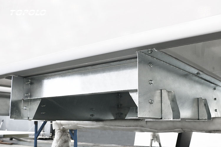 Die Längs- und Querträger des Hilfsrahmens werden im Stanzverfahren aus feuerverzinkten Stahlblechen (Zinkschichtdicke ≥ 80 μm) gefertigt. Die Feuerverzinkung bildet eine dichte Zink-Eisen-Legierungsschicht auf der Stahloberfläche, die wirksam vor Korrosion durch Feuchtigkeit, Kondensation und Straßenschmutz während des Kühltransports schützt und Rostbildung verhindert.