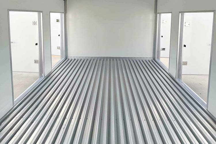 Als Böden werden hochwertige geprägte Aluminiumplatten oder Aluminium-Führungsnuten verwendet, um die Tragfähigkeit zu gewährleisten, stark und verschleißfest sowie leicht zu be- und entladen.