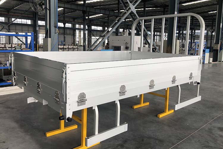 Der Aufbau des Kippers besteht aus hochfesten Aluminiumlegierungen der Serien 6061 oder 6063, die stark und langlebig sind und dem Druck und Verschleiß beim Be- und Entladen sowie beim Transport schwerer Gegenstände standhalten.