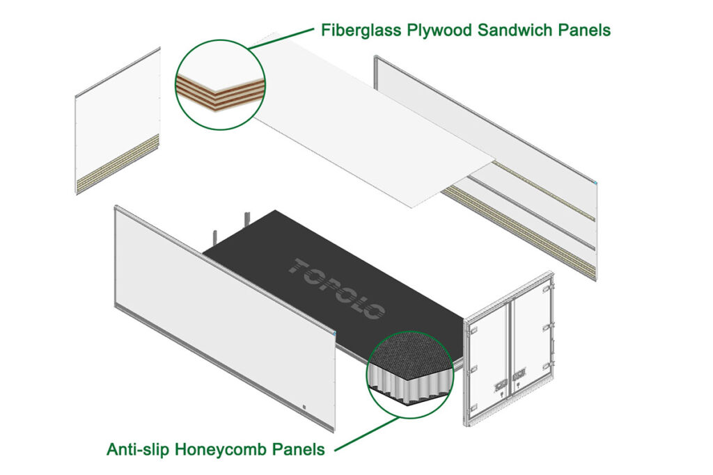 Sperrholz ist ein weit verbreitetes nachwachsendes Material, und Sandwichplatten aus Glasfasersperrholz sind eine ausgezeichnete Wahl für Hersteller, die leistungsstarke, langlebige und kostengünstige Trockenkarosserien herstellen möchten. Ihre Größe, Dicke und Isolationsoptionen können an die spezifischen Anforderungen verschiedener Transportaufgaben angepasst werden. Sandwichpaneele aus Glasfasersperrholz bieten eine ideale Lösung für LKW-Trockenaufbauten, da sie die Festigkeit und Haltbarkeit von Sperrholz mit den leichten und korrosionsbeständigen Eigenschaften von Glasfaser kombinieren. Diese Paneele sind so konzipiert, dass sie den strengen Anforderungen des Transports gerecht werden und eine hervorragende strukturelle Integrität bieten, während das Gesamtgewicht des Lkw-Aufbaus gering gehalten wird.