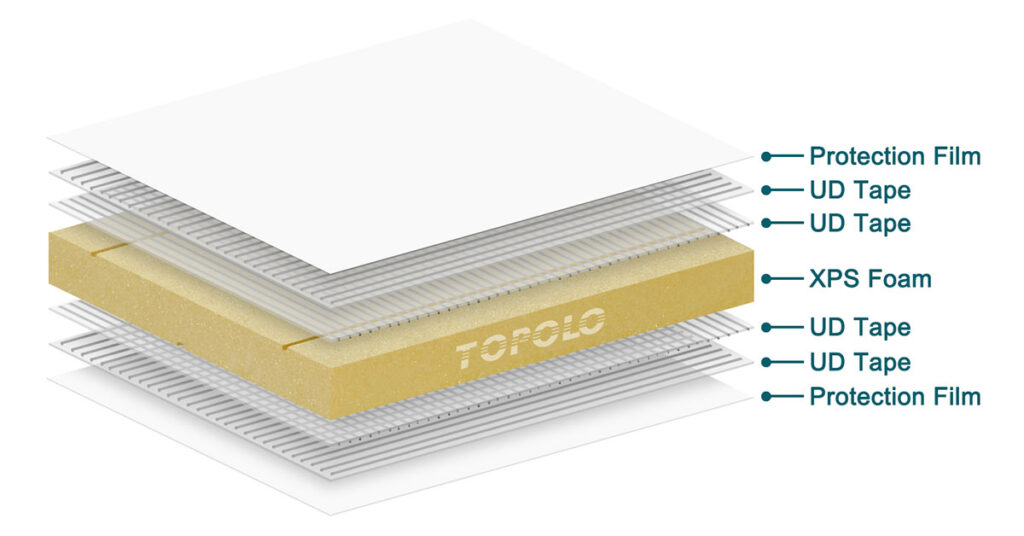 Die neue XPS-Schaumkern-Glasfaser-Dämmplatte verwendet CFRT (endlosfaserverstärkter Thermoplast) als Oberfläche. CFRT hat eine bessere Wärmedämmwirkung als Metallmaterialien und eine bessere Schlagfestigkeit als duroplastische Glasfaserplatten.