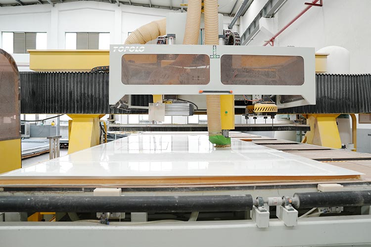 Durch die hochpräzise CNC-Bearbeitung kann ein präzises Formen von komplex geformten Platten in einer Bearbeitung erreicht werden. Unsere Fabrik ist mit mehreren hochpräzisen CNC-Bearbeitungsplattformen ausgestattet, die für die Anforderungen der großflächigen und schwierigen Plattenbearbeitung ausgelegt sind.