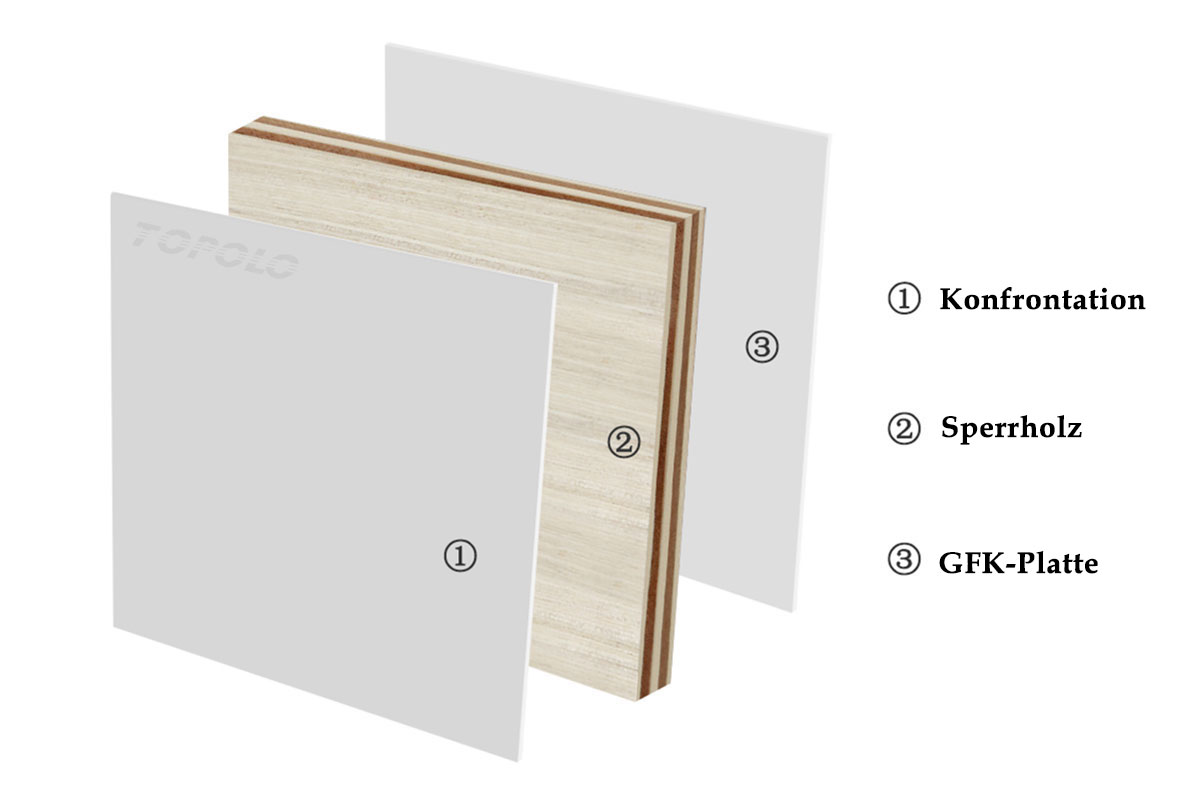 Die Haut und der Kern sind mit einem starken Klebstoff verbunden, um sicherzustellen, dass die Platte ihre Integrität und Festigkeit behält. Epoxid-, Polyurethan-, Acryl- und Silikonklebstoffe gehören zu den gebräuchlichsten Optionen, die jeweils deutliche Vorteile in Bezug auf Festigkeit, Flexibilität und Umweltbeständigkeit bieten.