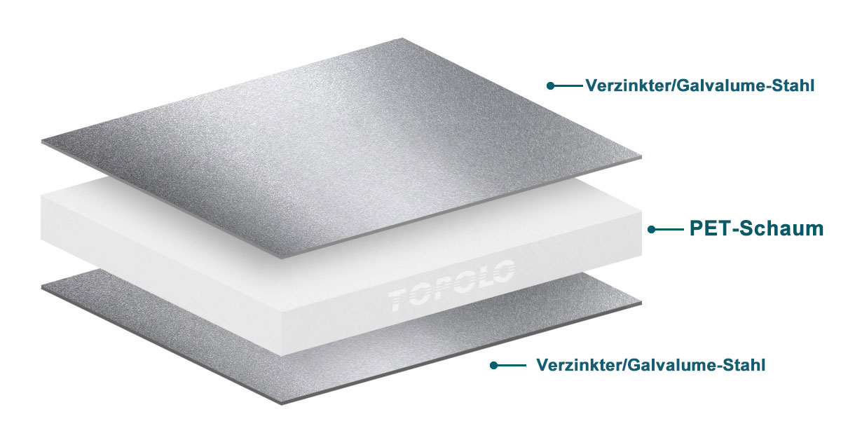 Sandwichpaneele mit verzinkter Stahloberfläche