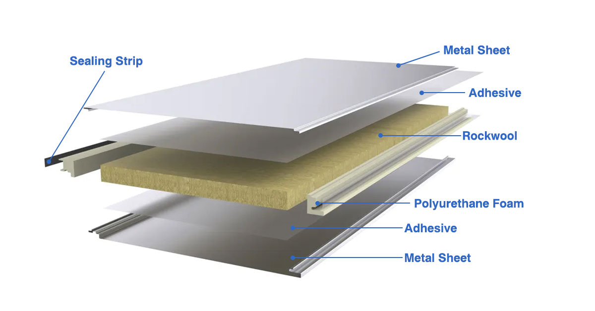 Rockwool-Sandwichpaneele nutzen die einzigartigen Eigenschaften der Rockwool-Kernmaterialien voll aus und erfüllen wichtige Funktionen wie Brandschutz, Wärmeschutz, Abdichtung und Schalldämmung. Sie haben auch eine hohe strukturelle Festigkeit und sind einfach zu installieren.