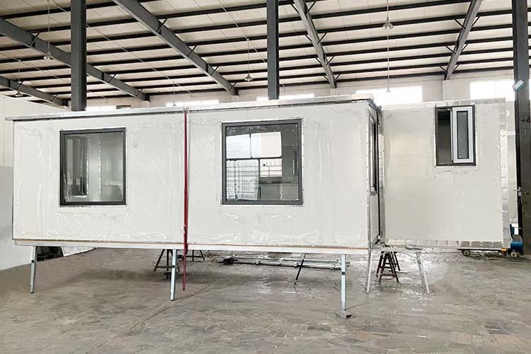 Der Hauptkörper des Trailer-Containerhauses besteht aus GFK-Sandwichplatten, und als Dämmkernmaterial wird Schaum mit geringer Wärmeleitfähigkeit verwendet. Diese Paneele gewährleisten die Wasserdichtigkeit und Wärmedämmung des Hauses und sorgen für eine dauerhafte strukturelle Festigkeit, wodurch die Haltbarkeit und der Komfort des Hauses verbessert werden.