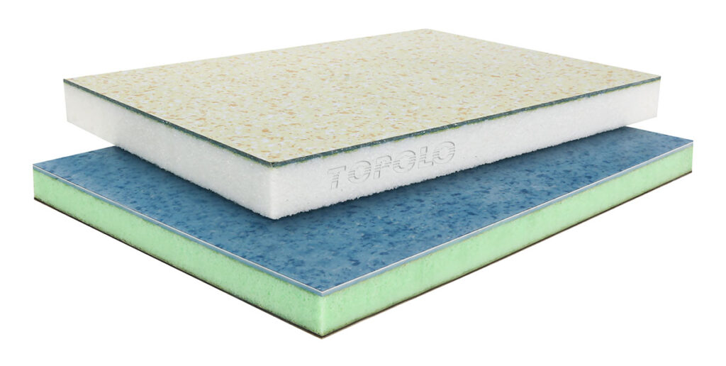 - PET-Schaumkern: Der PET-Schaumkern ist eine geschlossenzellige Struktur, die kein Wasser aufnimmt und eine hohe Festigkeit aufweist. Als Kernmaterial kann es eine hervorragende Stützfestigkeit für den Bodenaufbau bieten und so Stabilität und Haltbarkeit bei langfristiger Nutzung gewährleisten. Sein geringes Gewicht trägt auch dazu bei, das Gewicht der Gesamtstruktur zu reduzieren und gleichzeitig eine gute Wärmedämmung und Schlagfestigkeit zu gewährleisten.